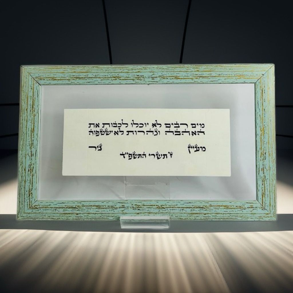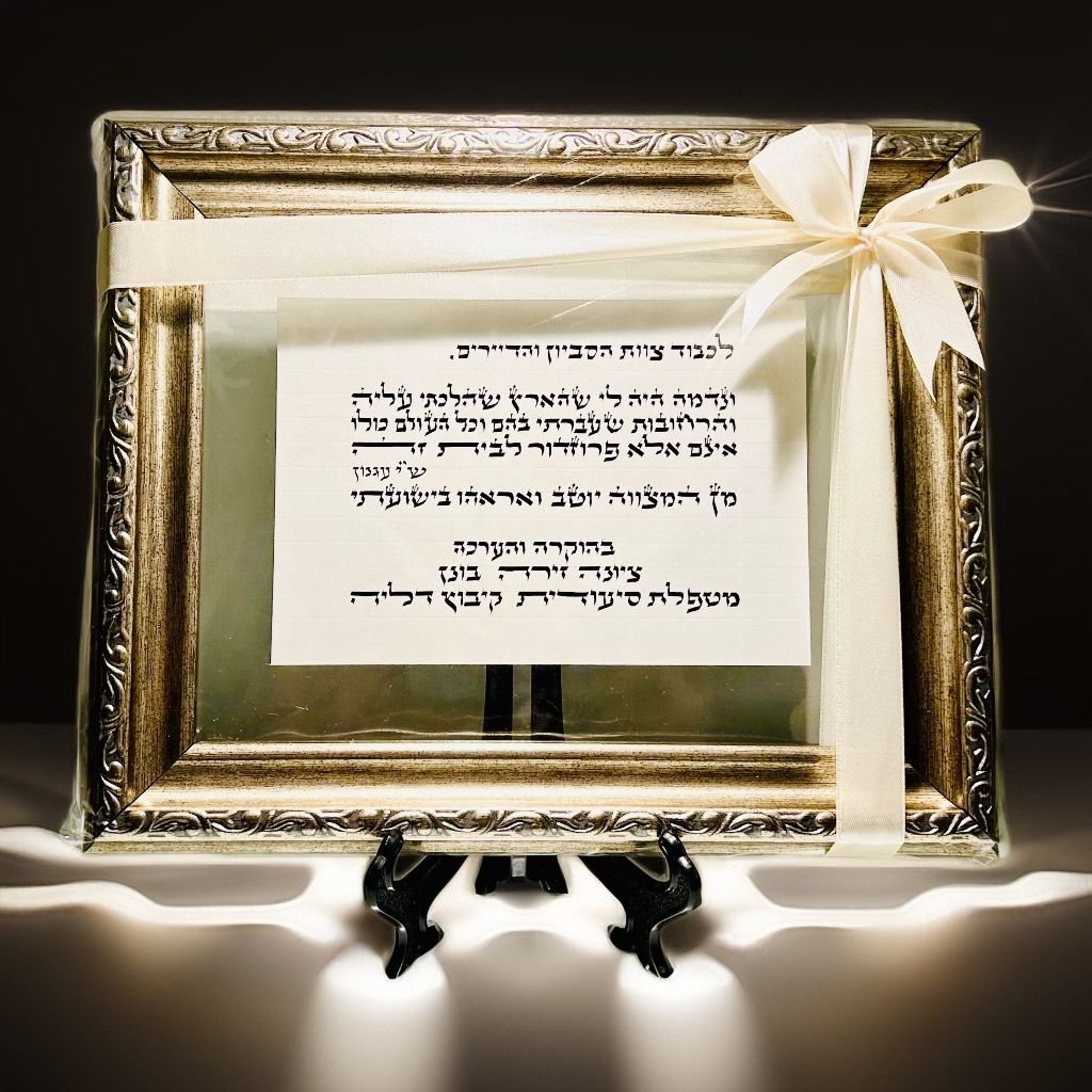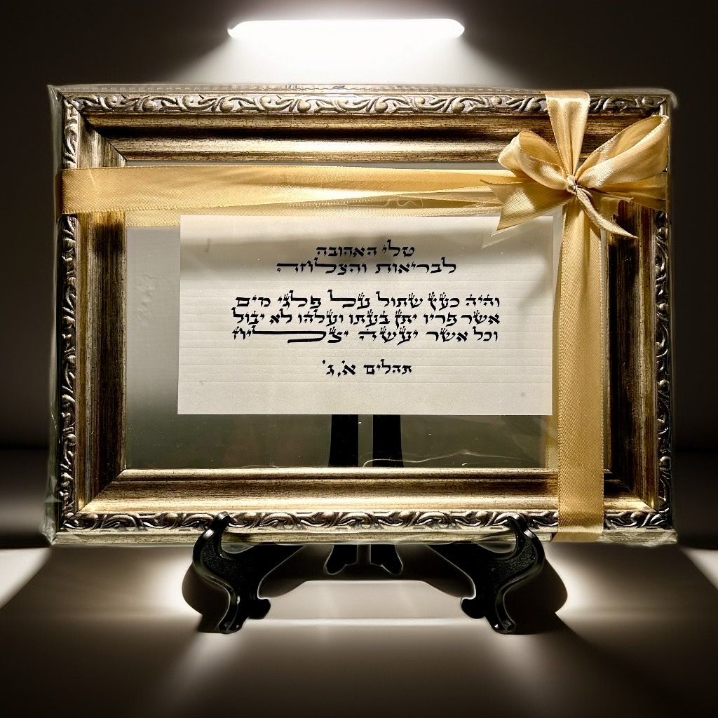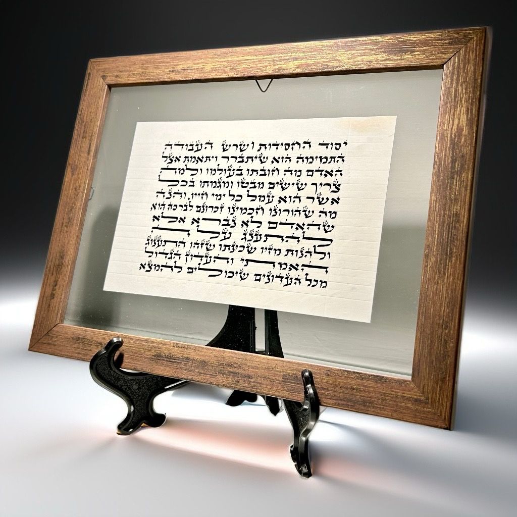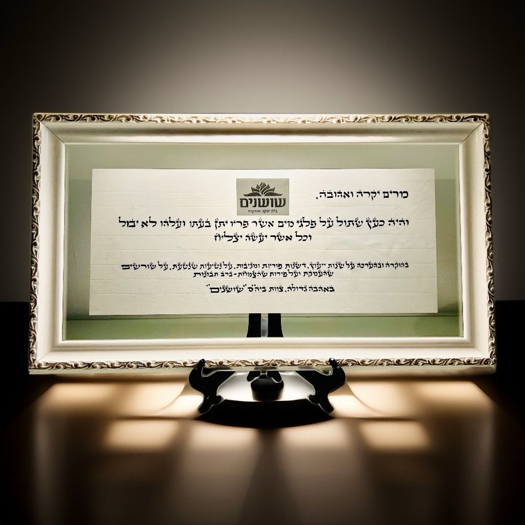 מלבד כתיבה של מזוזות, מגילות וספרי תורה, יצרתי מתנה אישית, שימושית ומרגשת שמשאירה רושם משמעותי אצל המקבל – כתיבה ממוסגרת אישית.