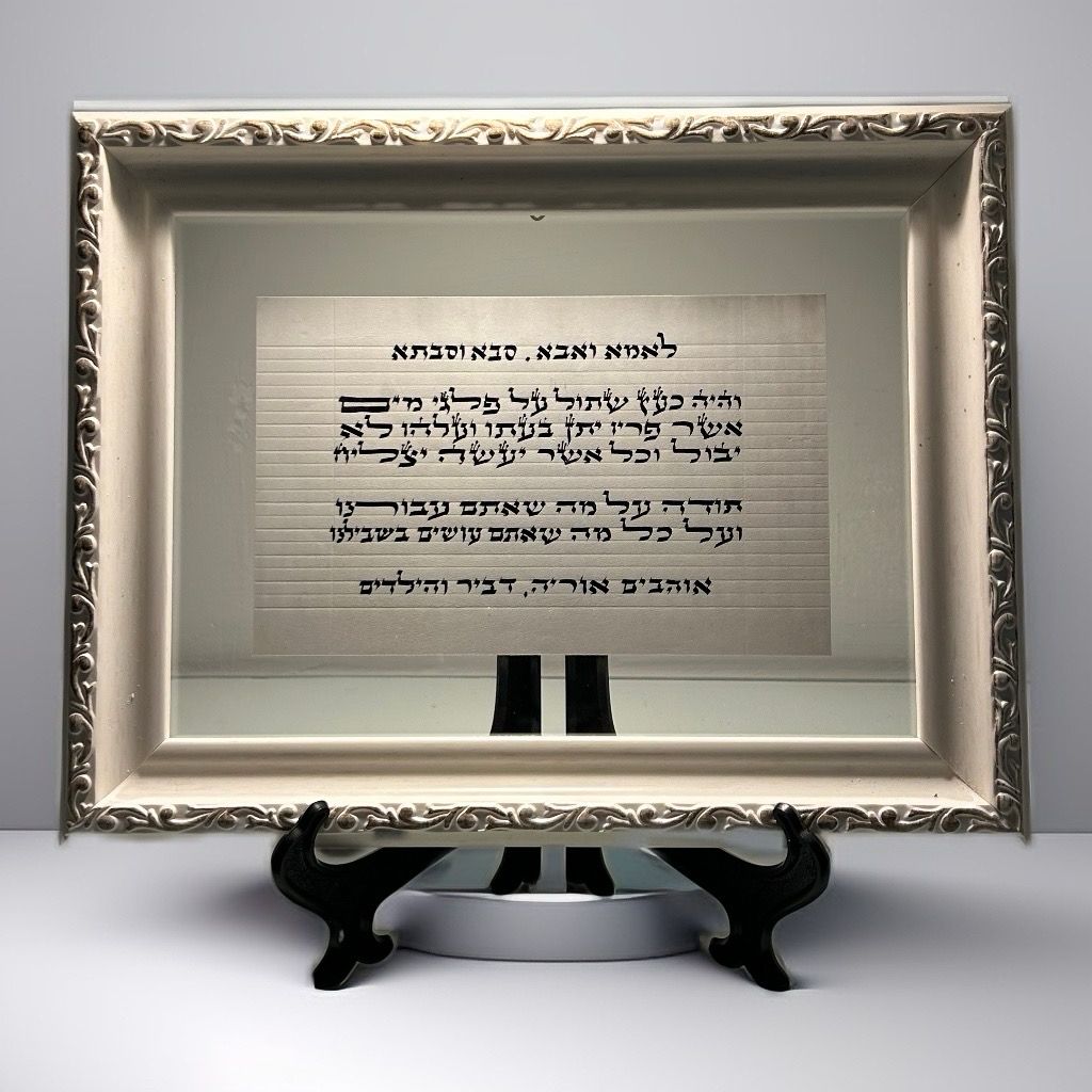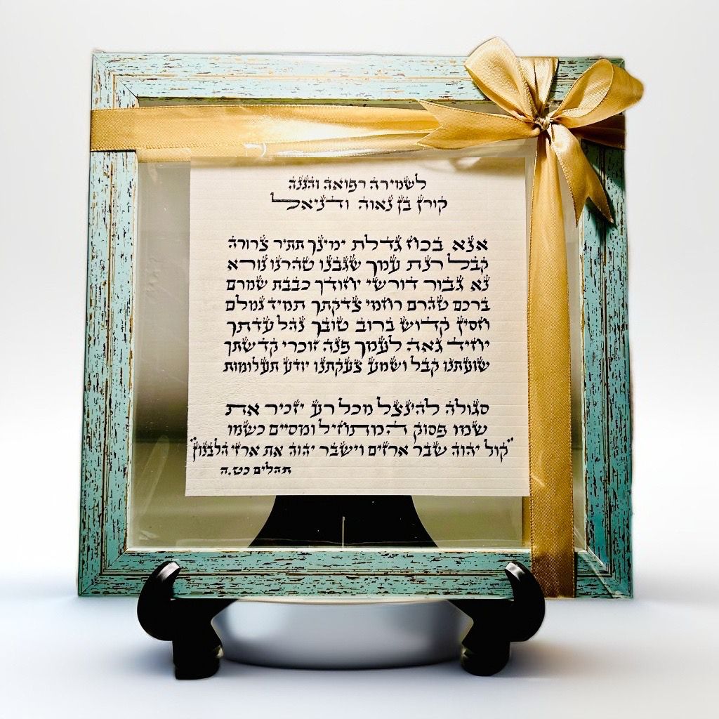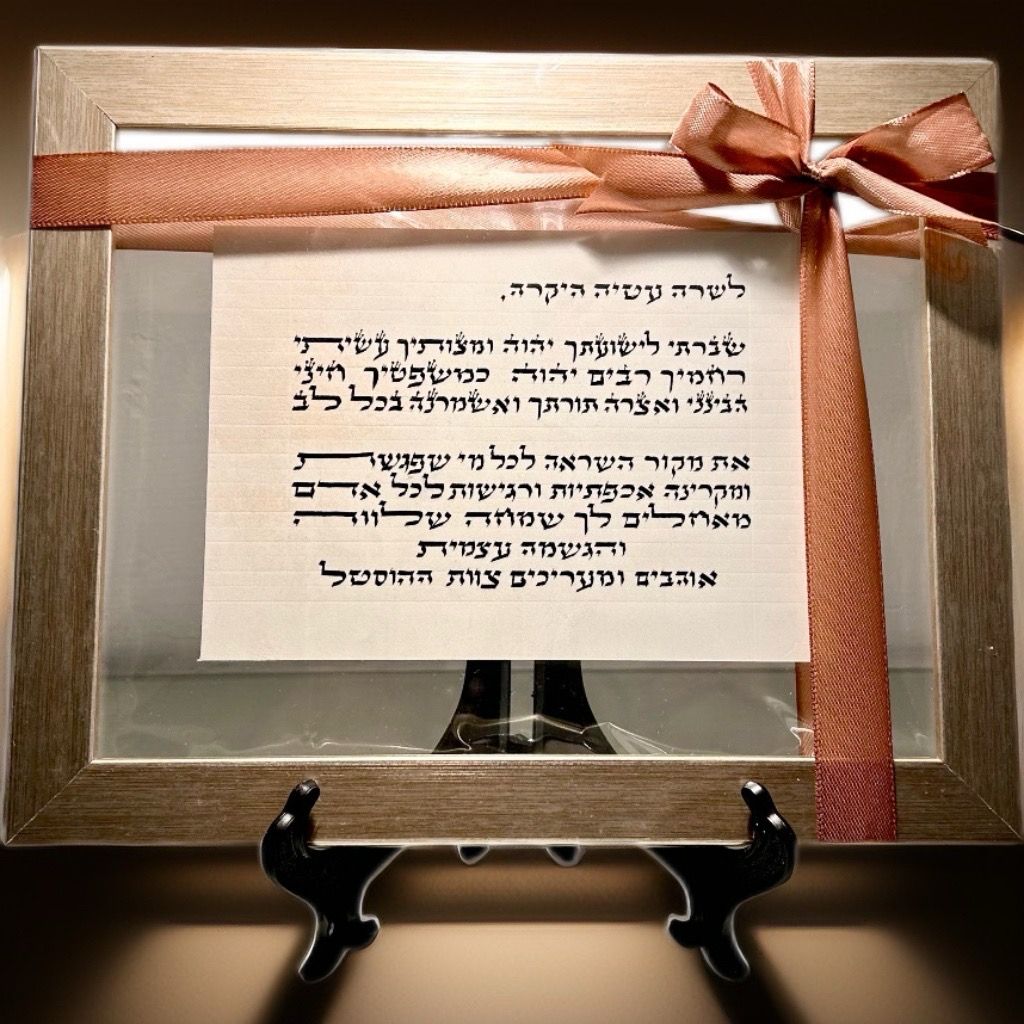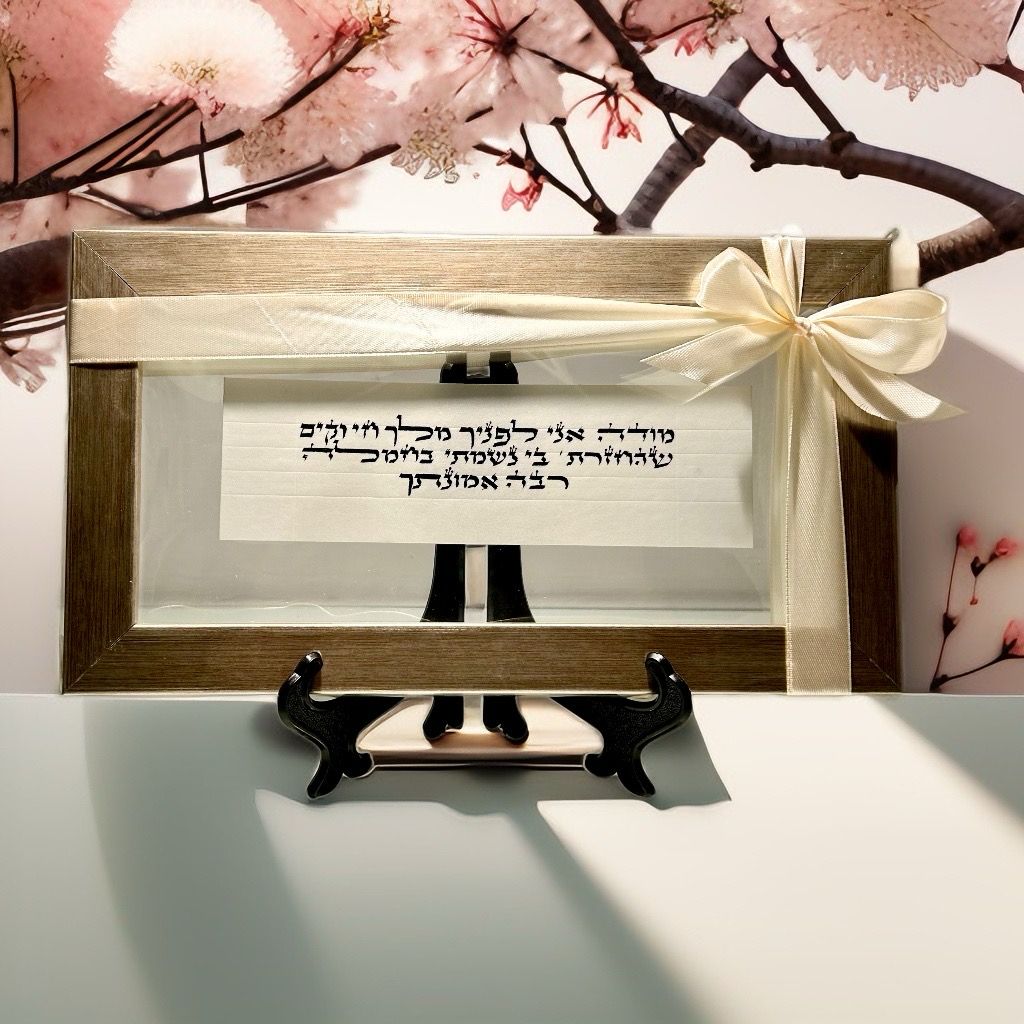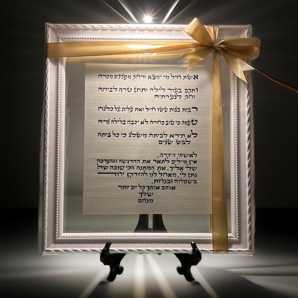 מלבד כתיבה של מזוזות, מגילות וספרי תורה, יצרתי מתנה אישית, שימושית ומרגשת שמשאירה רושם משמעותי אצל המקבל – כתיבה ממוסגרת אישית.