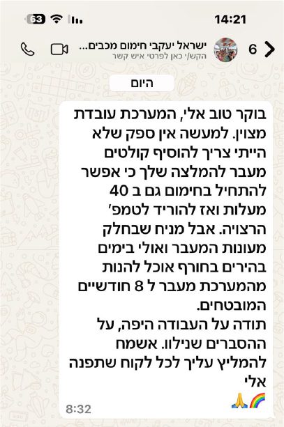 היום אני מתקין משאבות חום רק כשמדובר בחימום משולב הכולל חימום סולארי שמשתמש במשאבת חום רק בחודשים הספורים שכמעט ואין שמש כלל- וגם אז המערכת מנצלת את האנרגיה ותשלם הרבה פחות על חשמל!